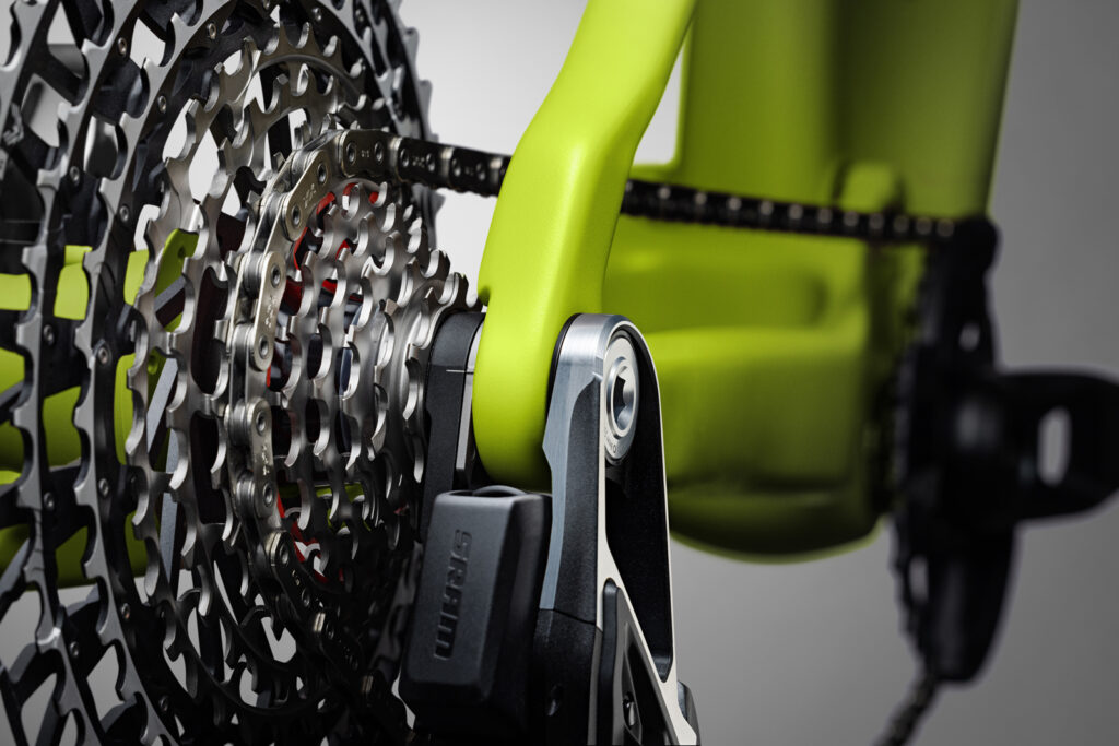 Mit Einführung des „Universal Derailleur Hanger“ (Universal Schaltauge), kurz UDH, im Jahr 2019 hatte Sram Vorarbeit geleistet für das, was mit der Transmission kommen sollte: Ein Schaltwerk, das direkt an der Schnittstelle zwischen Hinterbau und Steckachse sitzt. Selbst das UDH Schaltauge fällt damit weg. Einzige Voraussetzung: Der Rahmen, respektive Hinterbau, muss mit dem UDH-System kompatibel sein. Und da von Anfang an viele Hersteller von UDH überzeugt waren, findet man heute bereits mehr als 200 Bikes/Rahmen auf dem Markt, die diese Anforderungen erfüllen. Und es werden ständig mehr.