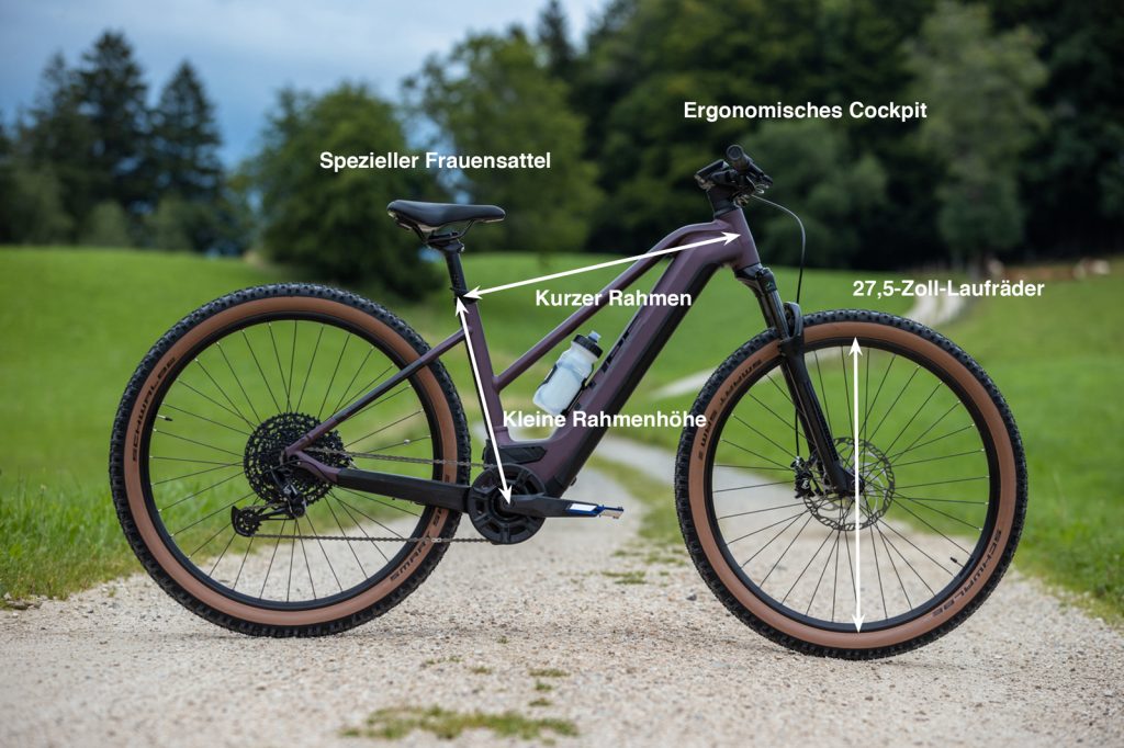 Wenn technisch realisierbar, ist bei speziellen Frauen Rahmen das Oberrohr besonders tief abgesenkt. Das Bike bietet dadurch mehr Schrittfreiheit und damit mehr Sicherheit im Gelände. Frau traut sich an technisch anspruchsvollen Passagen mehr zu, weil ein Abstieg im Zweifel schnell möglich ist.