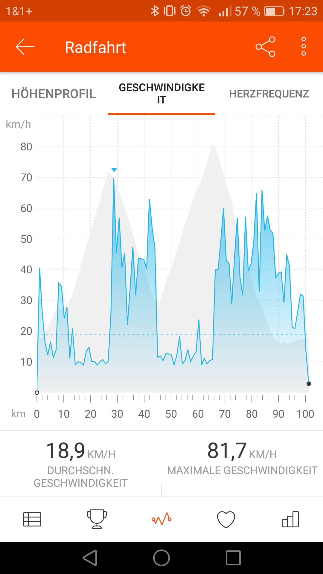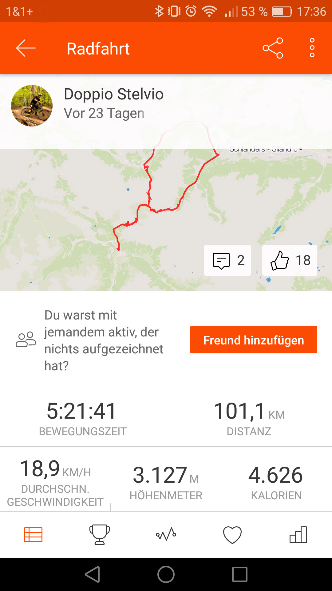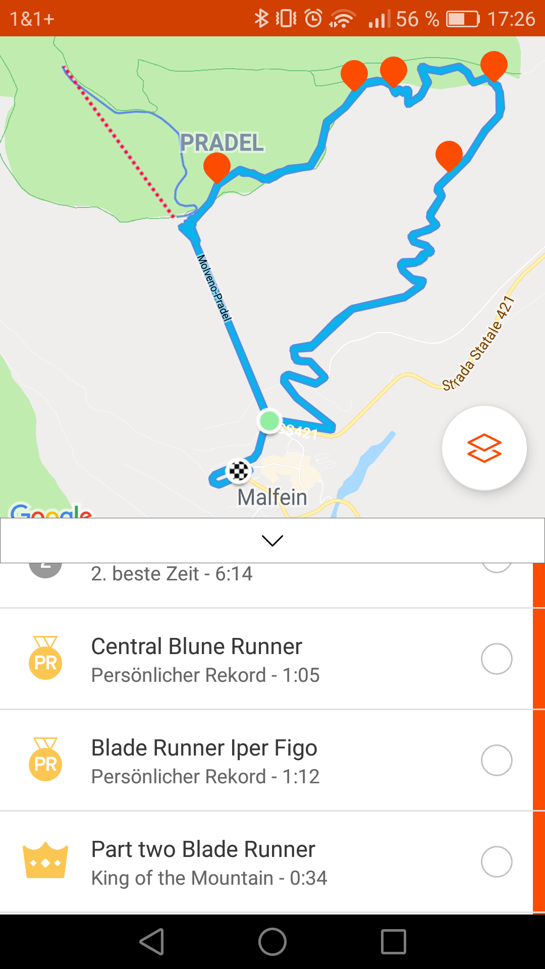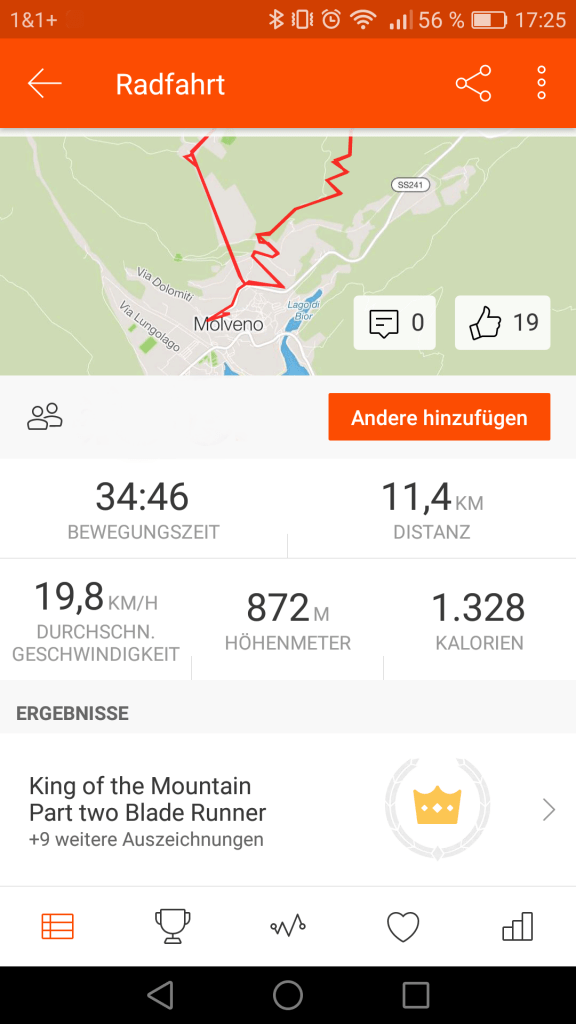 Strava gibt dir sämtliche Informationen über deine Radfahrt, wie gefahrene Zeit, Maximalgeschwindigkeit, Durchschnittsgeschwindigkeit, Gesamtkilometer etc. doch am wichtigsten sind die einzelnen Segmente, die auf der Route abgefahren wurden, und auch die dabei erreichten Bestzeiten auf dem jeweiligen Segment. Diese Segmente gibt es sowohl für Rennradfahrer auf Straßen als auch für Mountainbiker auf Trails.