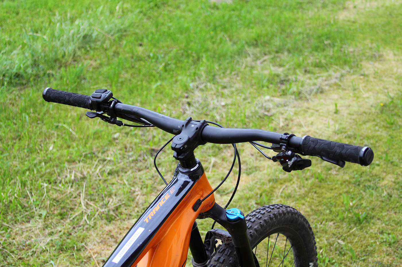 Dank des perfekt integrierten Antriebs wirkt das Trance E+ 1 Pro für ein E-Fully recht schlank und elegant. Steigt man übers Oberrohr in den Stand, fallen die große Schrittfreiheit und der breite Lenker auf. Warum, bemerkt man bei der Justierung der Sattelhöhe: Die Testgröße L ist für (m)eine Innenbeinlänge von 86 cm (Körpergröße 186 cm) gerade noch akzeptabel. Als Kunde würde ich zum Vergleich auf jeden Fall noch ein Modell in Größe XL ausprobieren. Dennoch: Aufgrund des recht kurzen Steuerrohrs – und damit tief liegenden Cockpit – nimmt der Fahrer auf dem Trance E+ 1 Pro eine tendenziell sportliche Sitzposition ein. Alles in allem wirken Rahmen und Ausstattung stimmig und wertig.
