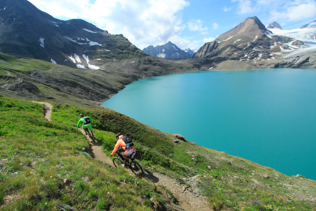 Charakter: Einfache Fahrstrecke bis S-Charl, dann Schotterweg bis zur Alp Astras. Auch der finale Trail über die Passhöhe ist meist fahrbar. Landschaftlich ein Traum! Logischer Anschluss: Durchs herrliche Hochtal Val Mora zum Lago Cancano und weiter nach Bormio.