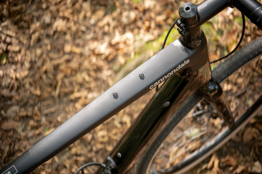 Eine Vielzahl an Aufnahmepunkten erlaubt die Montage von Packtaschen und Zubehör. Sowohl am Rahmen, wie auch an den Gabelholmen befinden sich diverse Gewindeeinsätze. Auch Schutzbleche können am Topstone Carbon montiert werden und falls man diese nicht benötigt, kann die notwendige Brücke dafür ganz einfach zwischen den Sitzstreben entfernt werden. So bleibt die sportliche Optik des Bikes erhalten.
