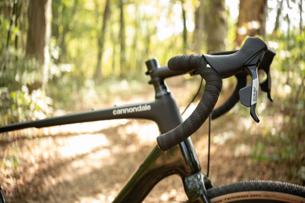 Die Balance zwischen einem laufruhigen Handling für sichere Abfahrten auf Schotterwegen und einem scharfen, agilen Handling für spaßige Kurvenwechsel ist die Herausforderung bei Gravelbikes. Das Cannondale gehört eher zur ersten Kategorie und bietet selbst auf losem oder grobem Schotter viel Sicherheit. Zwar lässt es sich auch gut durch Kurven manövrieren, allerdings gibt es hier Bikes, die einen Tick flotter einlenken. Wir sind aber der Meinung, dass die Laufruhe gut zum Charakter des Bikes passt.