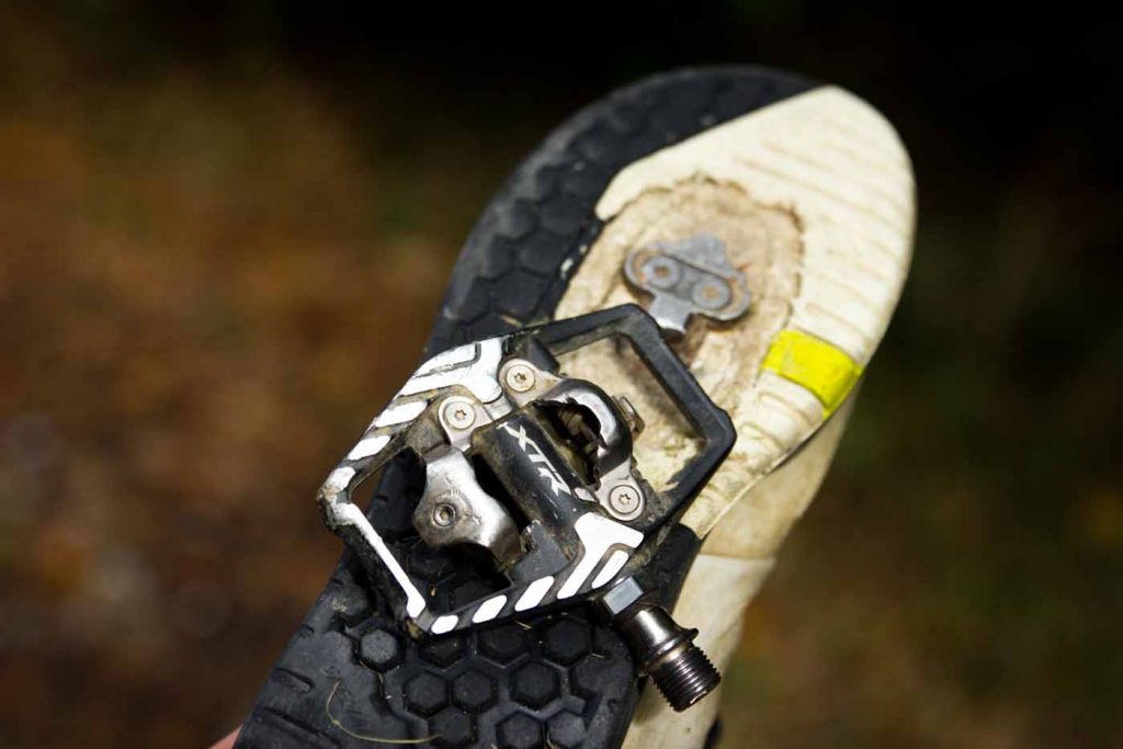 Wenn es bergab und auf den Trail geht, bieten die Klickies die Möglichkeit, das Rad mit den Füßen genauer zu führen. Egal ob kleine Sprünge, Bodenwellen oder über Wurzelsektionen – eingeklickt ist es möglich, kleine Linienanpassungen vorzunehmen und sauberer zu fahren. Der Fuß bleibt auch in extrem ruppigen Passagen sicher auf dem Pedal.