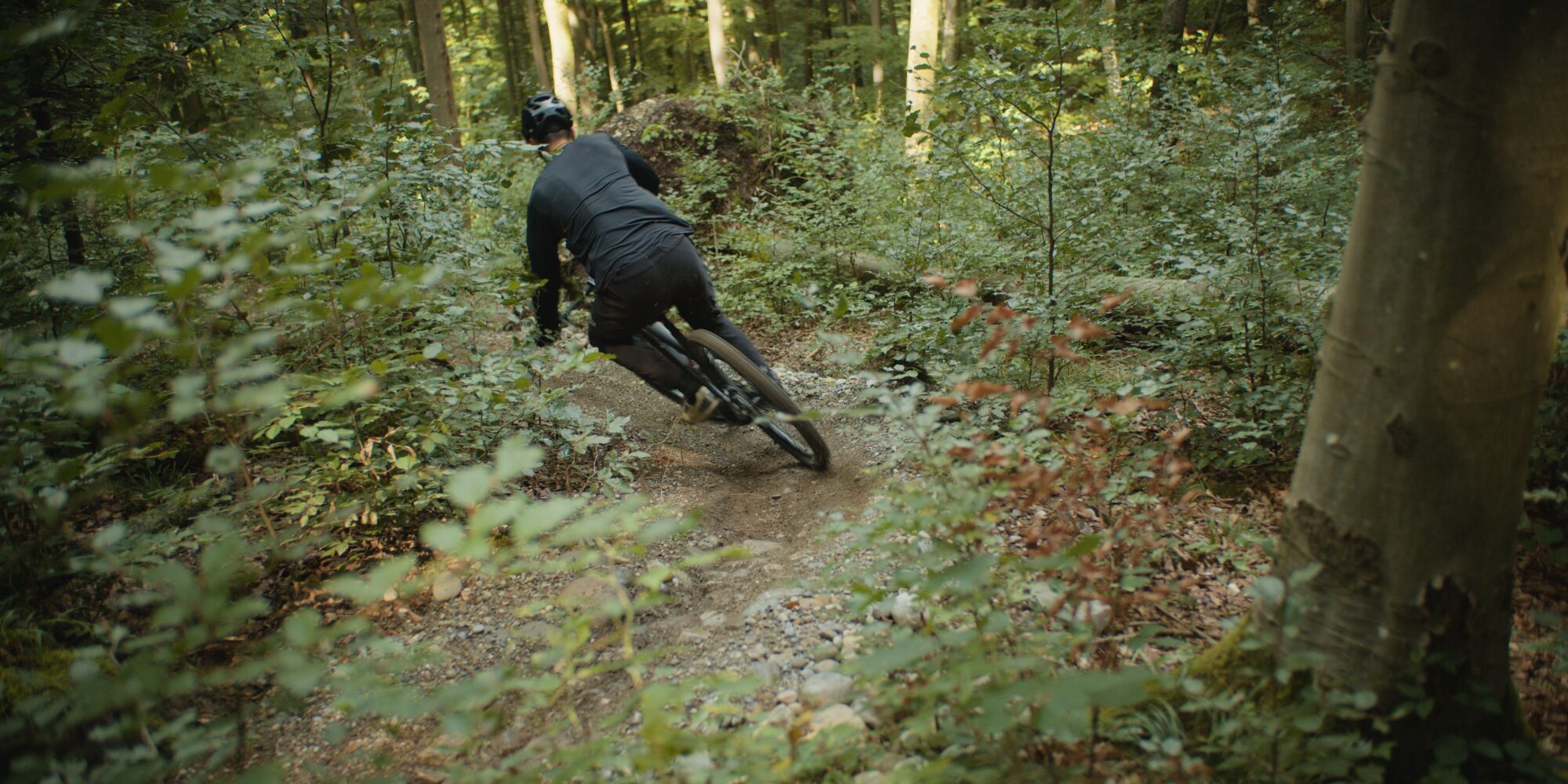 Einen entscheidenden Vorteil, den Full-Powered E-Bikes wie das Stereo Hybrid mit sich bringen, ist die sehr hohe Fahrstabilität der Bikes durch das hohe Eigengewicht und den niedrig gelegenen Schwerpunkt durch die Drive Unit und den Akku. Besonders das begünstigte Verhältnis von gefederter und ungefederter Masse sorgt außerdem für weniger Feedback, das an den Fahrer oder die Fahrerin weitergeben wird. Zwangsläufig führt das hohe Gesamtgewicht von Full-Powered E-Bikes aber auch dazu, dass Bremspunkte auf Abfahrten früher angepeilt werden müssen. Auch in steilem Gelände ist das Gewicht spürbar und muss stärker kontrolliert werden. Aktive Fahrmanöver, wie Bunny-Hops oder Manuals gehen zwar etwas schwerer von der Hand, sind aber trotzdem noch möglich.