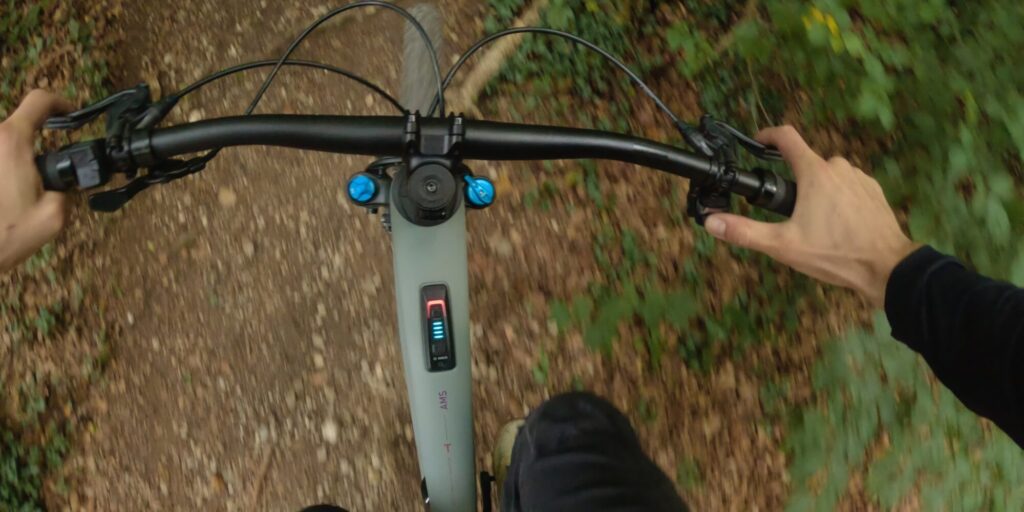 Der Performance SX Motor des AMS mit 55 Newtonmetern Drehmoment lebt von hohen Trittfrequenzen. Solange die Pedalumdrehungen über ca. 70 Umdrehungen bleiben, bringt der Motor starke Leistung und zieht auch in steilen Abschnitten kraftvoll nach oben. Dabei fühlt sich die Motorunterstützung äußerst natürlich an. Auch wenn man an das Ende der Unterstützung bei 25 km/h angelangt, gibt der SX keine ruckartigen Schübe ab, sondern verhält sich sanft und komfortabel. Auffällig war für uns außerdem, dass der Motor selbst bei sehr hohen Trittfrequenzen, wenn man beispielsweise in kleine Gegenanstiege sprintet, nicht nachlässt, sondern immer mehr Leistung abgibt. Das vermittelt einem weniger das Gefühl, mit einem Motor unterwegs zu sein, als das organische Gefühl eines Bio-Bikes.