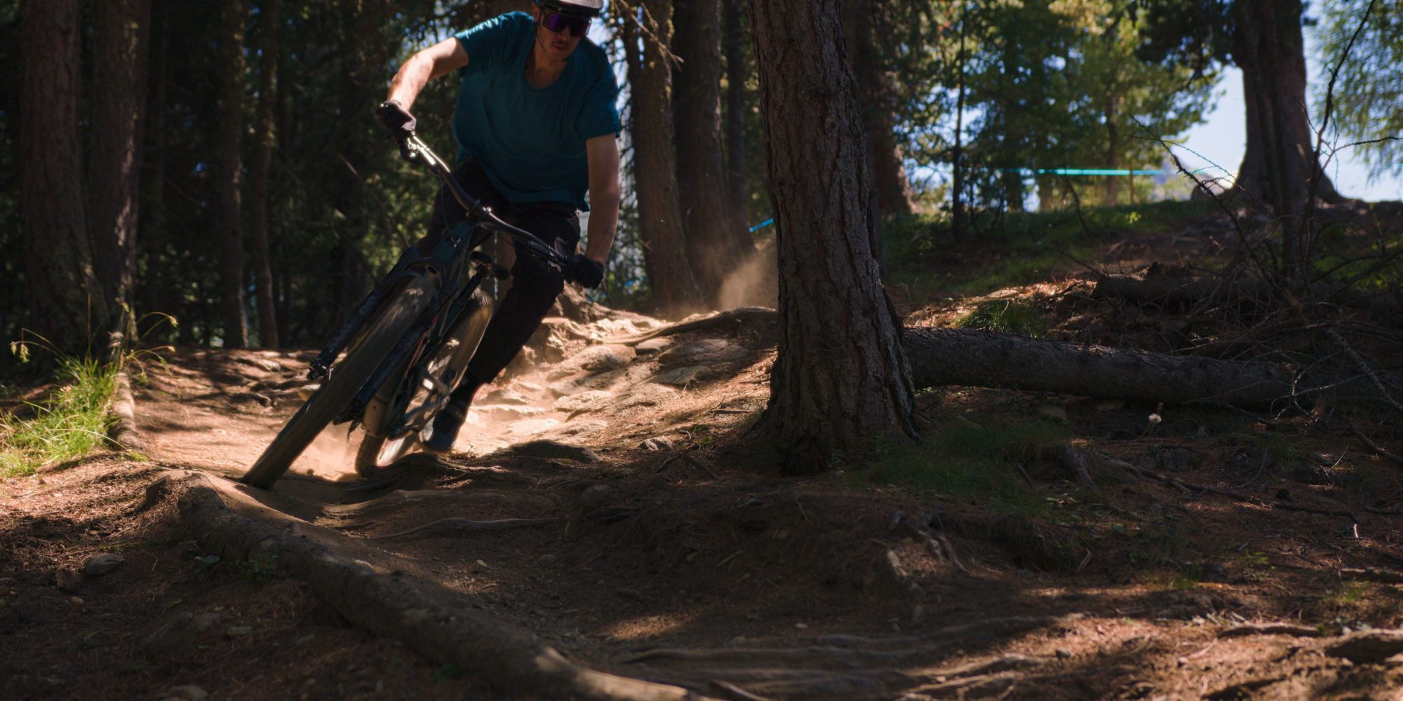 Eine Couch ist das Bike allerdings nicht. Das Fahrwerk lädt mit ordentlich Gegendruck eher zum verspielten Fahren ein. An kleinen Wurzeln kann man leicht abziehen und beim Pushen durch Wellen generiert das Bike viel Schwung. Die Position im Bike auf dem Trail ist zentral mit etwas mehr Druck auf dem Lenker. Dadurch geht das Bike sehr gut durch Kurven und Anlieger. Der Gegendruck vom Fahrwerk hilft dabei nicht in den Kompressionen der Anlieger zu versacken. Alles in allem eine Rakete auf flowigen und verspielten Trails!