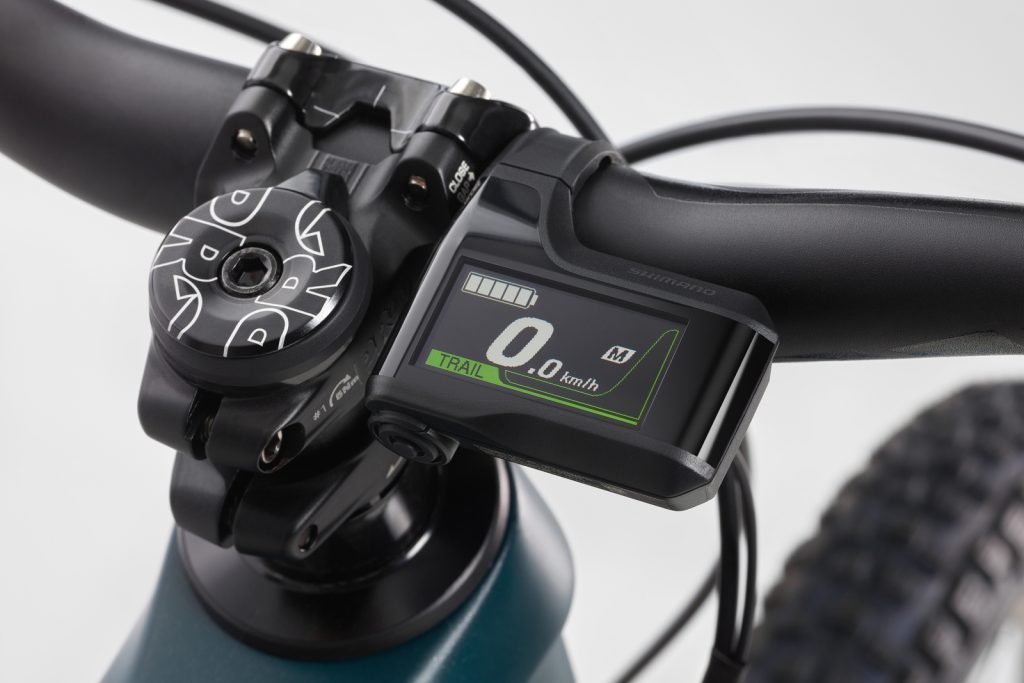 Die Shimano Bedienelemente zeichnen sich seit jeher durch eine angenehme Reduktion aufs Wesentliche aus. Das 1,6 Zoll kleine EP8 Display macht da keine Ausnahme. Es sieht dem bekannten E8000 Display zwar zum Verwechseln ähnlich, bietet jedoch die neue Option, dass man zwischen verschiedenen Systemprofilen umschalten kann. Wichtigste Funktion: Es lässt sich via Bluetooth mit dem Smartphone verbinden. Denn erst mit Hilfe der neuen Shimano Apps lassen sich die riesigen Möglichkeiten des EP8 Antriebssystems voll ausschöpfen. Das Display ist wie gewohnt verbunden mit einem Daumenschalter, der zwischen den Basis-Unterstützungsstufen ECO, TRAIL und BOOST navigiert. Außerdem kann man hier bei Bedarf die Schiebehilfe aktivieren oder den Motor ausschalten.