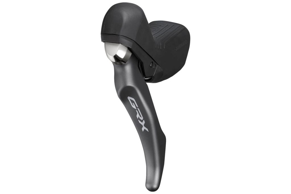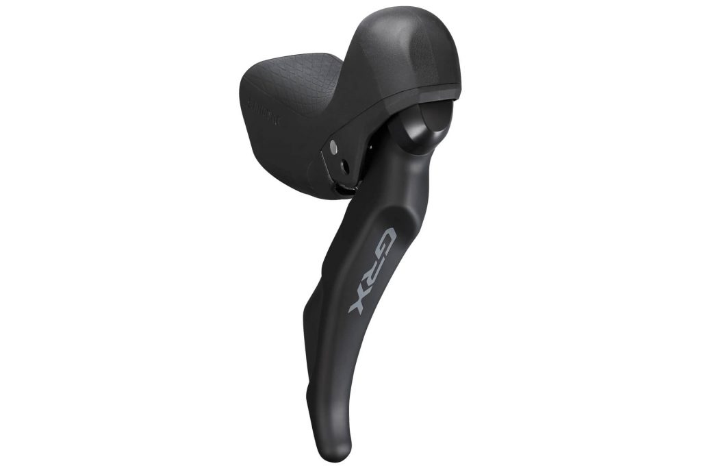 An den Schalt-/Bremshebeln sieht man besonders deutlich, dass sich die Shimano-Entwickler intensiv mit den Anforderungen beim Gravelbiken auseinander gesetzt haben. Damit der Fahrer die Schaltung auch während grober Erschütterungen treffsicher bedienen kann, sorgt eine Anti-Rutsch-Beschichtung auf den Schwenkhebeln für Grip. Außerdem ist die Drehachse der Hebel 18 Millimeter höher platziert als bei den reinen Rennrad-Hebeln. Das hilft beim Treffen der gewünschten Gangstufe, da die Schaltwege etwas weiter sind. Die Hebel gibt es in mechanischer Version (ST-RX810/RX600/RX400 und ST-RX810-LA) und mit elektrischer Übertragung der Schaltimpulse (Di2: ST-RX815).