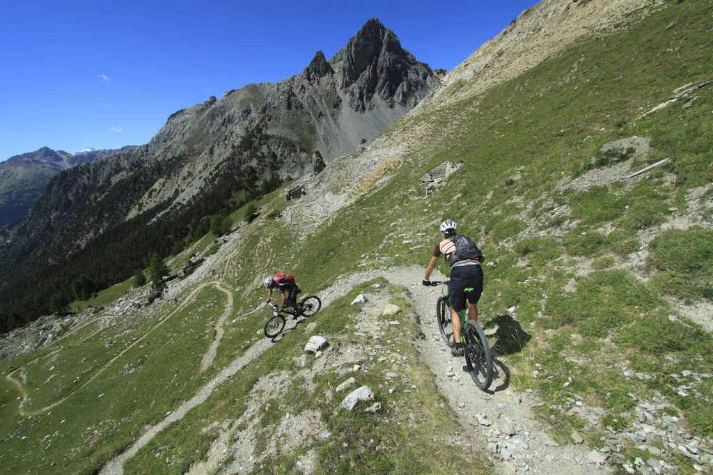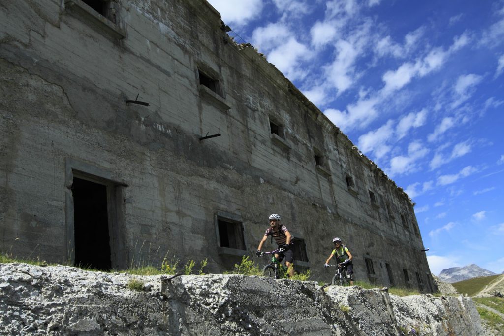 Bekannt ist das Skiresort Sestrière im Nachbartal, das über Lifte mit dem Ort Sauze d’Oulx im Val di Susa verbunden ist. Im Bereich dieser Orte (Sestrière, Oulx und Bardonecchia) finden Tourenbiker auf alten Militärpisten ihr Eldorado. Viele Wege stammen aus den Weltkriegen, als die Grenze zu Frankreich hart umkämpft war. Der Must-Do-Klassiker in der Region ist die Assietta-Kammstraße (Strada dell’Assietta), die man in verschiedenen Varianten befahren kann. Sie verläuft auf einer Länge von über 60 Kilometern zwischen dem Colle Finestre und dem Ort Sestrière. Man fährt fast immer auf über 2000 Metern Höhe und muss zahlreiche kleine Pässe überwinden. Bonus für Biker: Motorisierte Fahrzeuge sind nur an zwei Tagen in der Woche (Mi und Sa) im Juli und August erlaubt. Legendär ist der Anstieg auf den 3136 Meter hohen Mont Chaberton, auf dessen Gipfel ein altes Fort thront. Allerdings ist die Tour pure Quälerei. Denn seit Jahren ist die steile Piste dem Verfall preisgegeben. Wer allerdings die langen Schiebestrecken in Kauf nimmt, kann mit einem Touren-Enduro und entsprechendem Federweg einen unvergesslichen Downhill genießen!