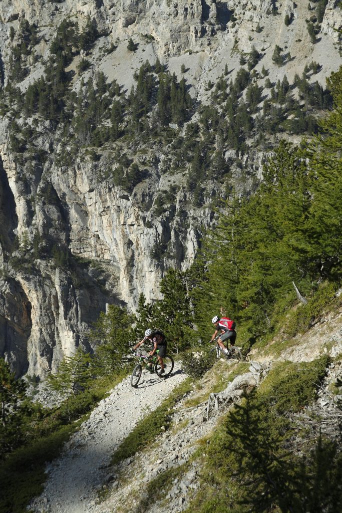 Auf endlos langen Singletrails umrundet man den 2702 Meter hohen Fraiteve, der zwischen Sauze d’Oulx und Sestrière aufragt. Wie in Tour 1 klettert man zunächst von Sauze auf den Colle Basset (2410 m). Parallel zur Assietta Straße fällt auf der Südseite ein steiler Trail Richtung Sestrière. Auf Höhe 2220 Meter zweigt rechts der Sentiero Bordin ab, dem man bis zum Gasthof Boef Soleil für viele Kilometer folgt. Dort beginnt eine steile Trail-Abfahrt hinunter nach San Sicario. Gleich am Ortsrand rechts und über die Almen Autagne und Malafosse Bassa zurück nach Sauze d’Oulx. Ein anstrengendes aber traumhaft schönes Finale!