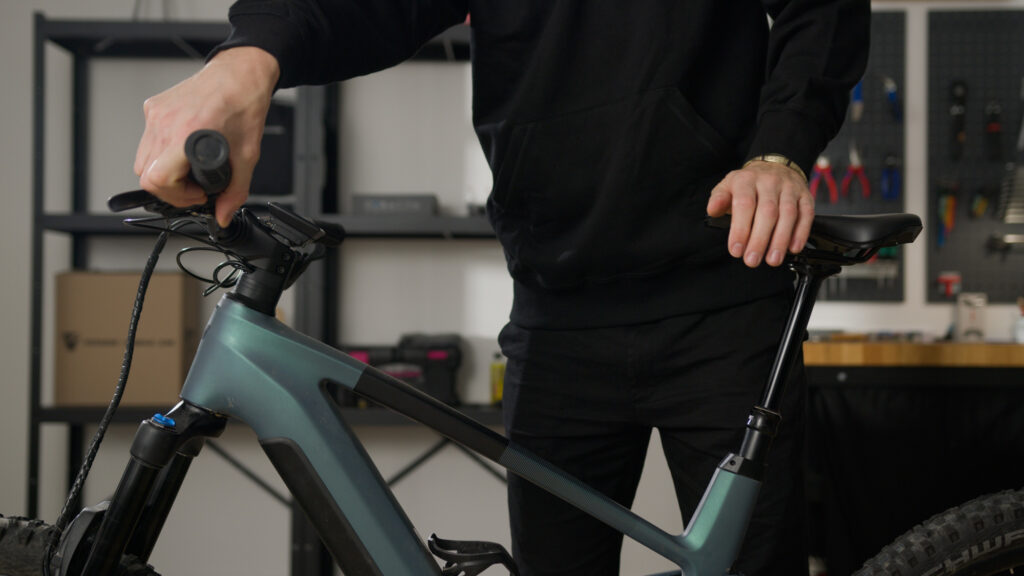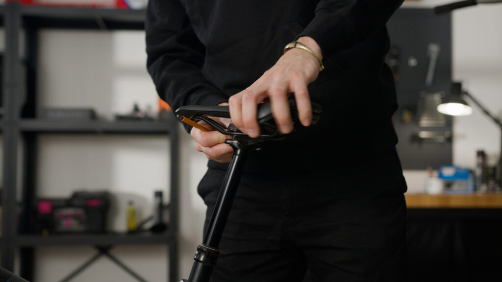 Abhilfe ist ganz simpel: Versuche, ein Stück des Bowdenzugs in den Rahmen nachzuschieben. Wenn das nicht klappt, kannst du die Sattelstütze auch lösen und etwas weiter herausziehen, als du sie normalerweise fahren würdest und anschließend wieder auf deiner normalen Sattelhöhe klemmen. Gehe hier bitte mit Gefühl vor und reiße nicht am Kabel, da du sonst die Stütze beschädigen könntest.