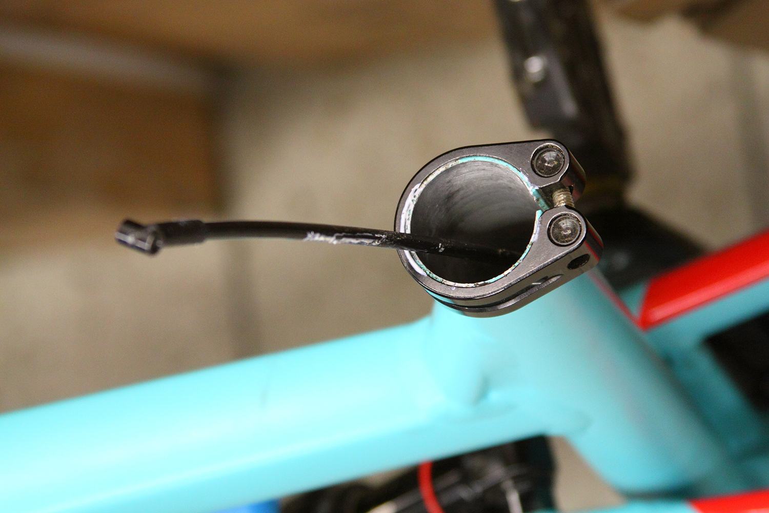 - Zugverlegung: In der Regel werden Vario-Sattelstützen von unten durchs Sitzrohr angesteuert. Das heißt, der Zug für die Fernbedienung muss in den Rahmen eingeführt werden. Ab Werk ist der Eintritt normalerweise im Bereich des Steuerrohrs. Wenn keine spezielle Eintrittsöffnung vorhanden ist (wie z. B. bei CUBE), dann muss der Zug außen am Rahmen verlegt werden. Es gibt für diesen Fall Vario-