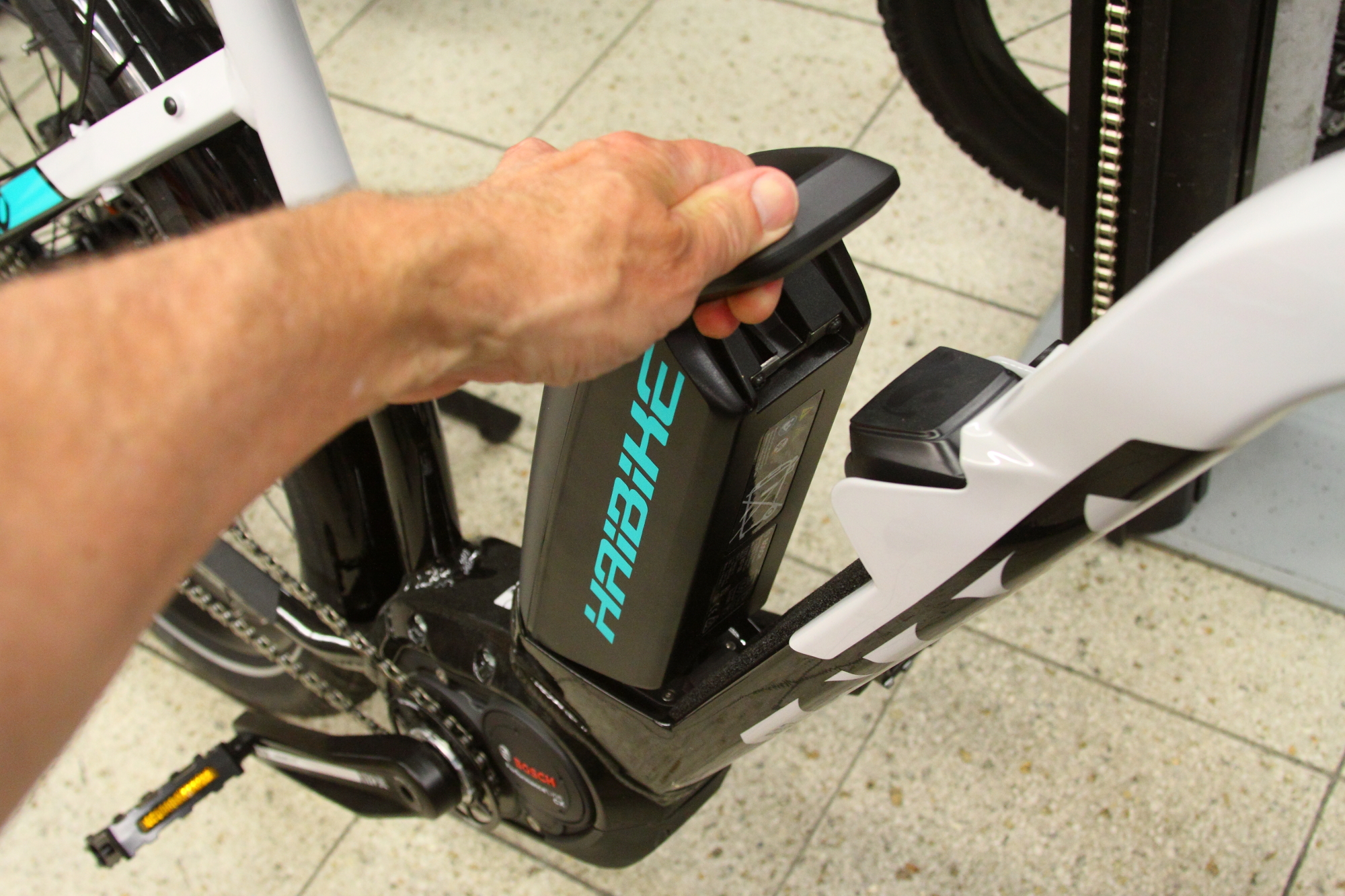 Die meiste Zeit ja. Aber es gibt Ausnahmen: Zum Beispiel beim Transport des E-Bikes auf einem Auto-Fahrradträger. Zum einen wird der Träger weniger schwer belastet. Zum anderen ist der Akku im Auto einfach besser geschützt. Wenn bei Regen Wasser in die Aufnahme am E-Bike gelangt, fließt es nach unten ab. Man kann aber die Kontakte auch mit Hilfe einer Pin Abdeckung (Bosch Zubehör) zusätzlich schützen. Auch das Display sollte man auf einer Autofahrt abnehmen. Wenn das E-Bike längere Zeit nicht benutzt wird, sollte man den Akku ebenfalls herausnehmen und an einem trockenen Platz lagern, am besten bei einer normalen Raumtemperatur von 15 bis 20 Grad. Das gilt besonders im Winter, wenn das E-Bike überhaupt nicht benutzt wird! Achtung: Den Akku keinesfalls leer einlagern, sondern stets mit einer Ladung von 30 bis 60 Prozent. Bei außen auf dem Unterrohr sitzenden Akkus ist die Montage-/Demontage im Handumdrehen erledigt. Selbst integrierte Akkus lassen sich in der Regel einfach aus dem Unterrohr entnehmen. Hierzu jeweils die Anweisungen des Herstellers beachten.