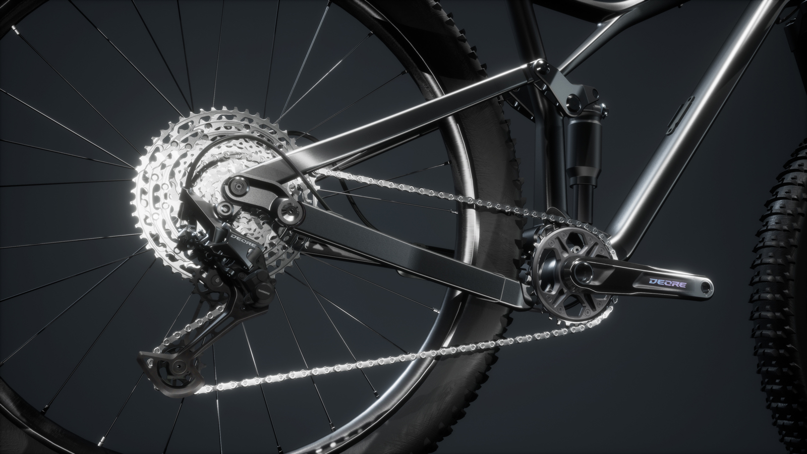 Das neue 12-fach Schaltwerk kann mit seiner elegant-schwarzen Farbe nicht nur optisch überzeugen. Die bei den modernen 1×12 Antrieben üblichen, extremen Größenunterschiede der Ritzel erfordern beim Schaltwerk spielfreie Lagerpunkte und höchste Präzision. So reduzieren große Leit- und Spannrollen mit 13 Zähnen Laufgeräusche. Außerdem sorgt der robuste Käfig für hohe Kettenspannung und hält damit die Kette auch in holprigem Gelände im Zaum.