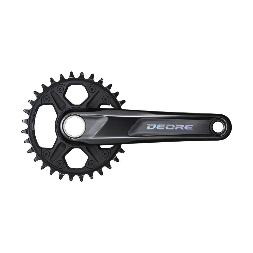 In Zeiten, wo Antriebe mit einem einzelnen Kettenblatt langsam aber sicher zum Standard am MTB werden, stehen Kurbeln und Schaltungen natürlich besonders im Fokus. Zu Recht, denn gerade in diesem Punkt hat Shimano die Deore auf den neuesten Stand der Technik gebracht. Bisher lediglich mit Doppel- oder Dreifach-Kettenblatt erhältlich, gibt es die Deore Kurbel jetzt auch in einer Einfach-Version. Das Kettenblatt wahlweise mit 30 oder 32 Zähnen. Die eingesetzten Technologien wie das Dynamic Chain Engagement (speziell geformte Zähne für sicheren und leisen Lauf der Kette) und Direct-Mount (zentrale Befestigung an der Kurbel) sind dieselben, wie bei den Top-Gruppen bis hinauf zur XTR. Info: Parallel dazu sind die 11- und 10-fach Versionen der Deore weiterhin im Shimano Programm (alternativ mit Ein- oder Zweifach-Kurbel).