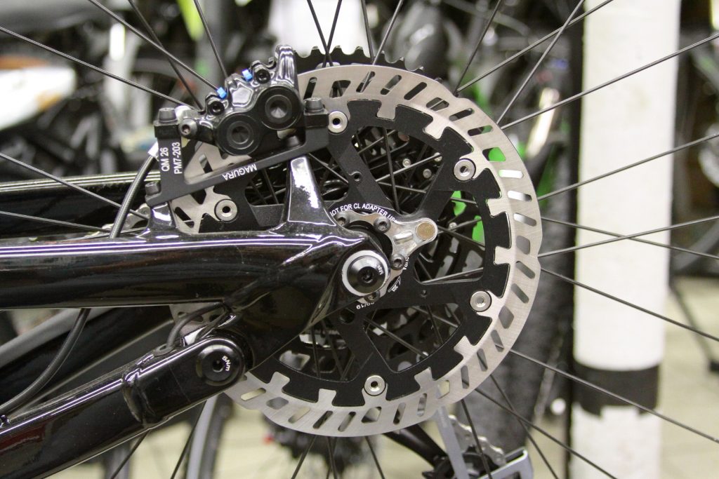 Scheibenbremsen funktionieren ganz einfach nach dem physikalischen Gesetz der Hebelwirkung: Je größer der Hebel, desto höher die Bremsleistung. Deshalb gilt für schwere E-Bikes: Je größer die Bremsscheiben, desto besser. Man sollte darauf achten, dass die Scheiben am E-Bike (besonders an E-MTBs) einen Durchmesser von 203 Millimeter besitzen. Speziell für E-Bikes hat nicht nur Magura jetzt auch Scheiben mit 220 Millimetern Durchmesser im Programm. Das bedeutet gegenüber den 203er Scheiben eine Steigerung der Bremsleistung um weitere 10 Prozent.