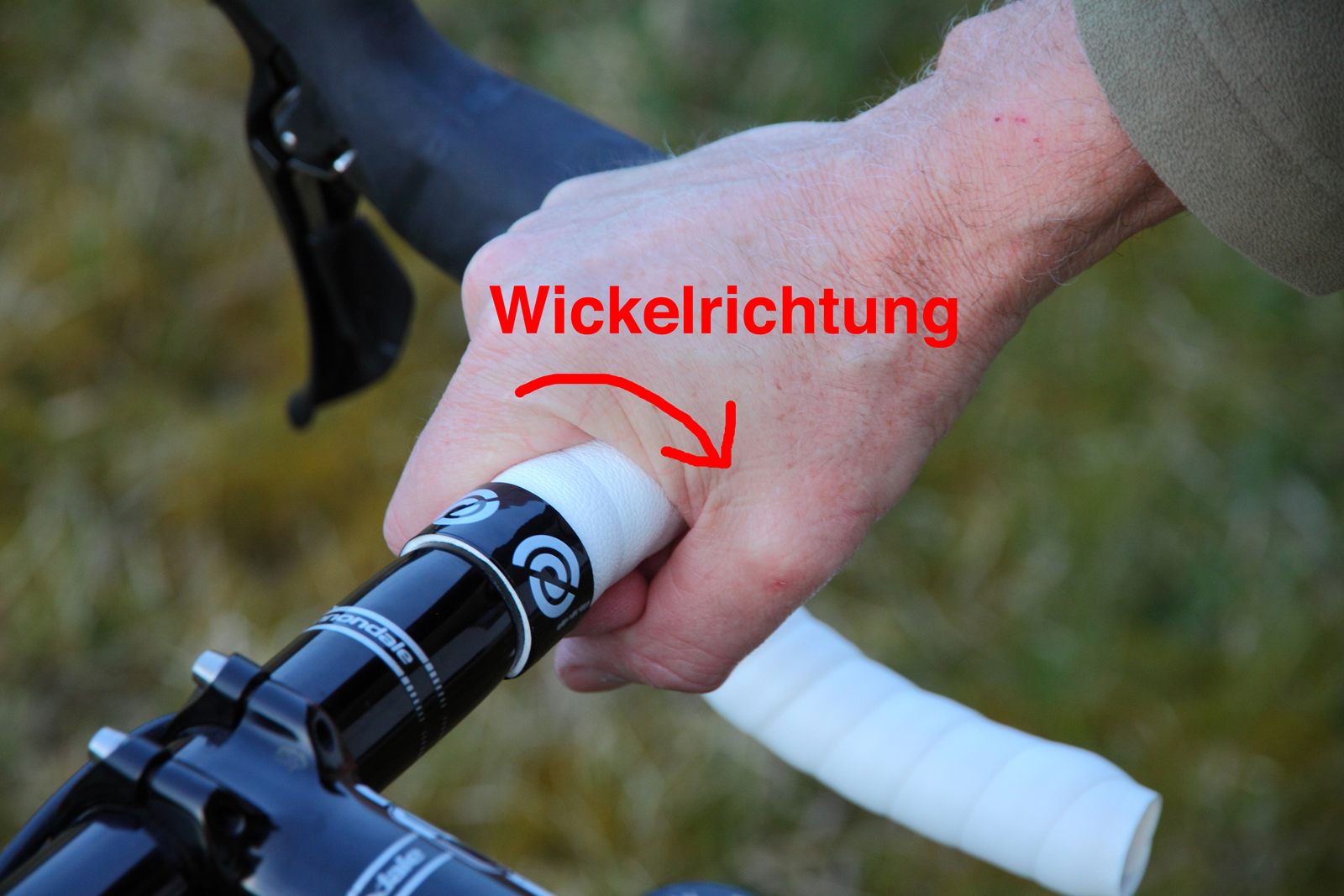 Das Lenkerband wickelt man a) von unten nach oben, also von den Lenkerenden aus in Richtung Vorbau und b) von außen nach innen. Das sorgt zum einen dafür, dass man bei der häufig gebräuchlichen Oberlenkerhaltung die Wicklung tendenziell festzieht (wie bei der Betätigung eines Gasgriffs am Motorrad). Ein sicherer Sitz ist damit stets gewährleistet. Zum anderen liegen bei dieser Montage-Art die Wicklungen so übereinander, dass die Bandränder beim nach außen Rutschen der Hände keinen Widerstand bieten. Vergleichbar mit den Schuppen auf einer Fischhaut.