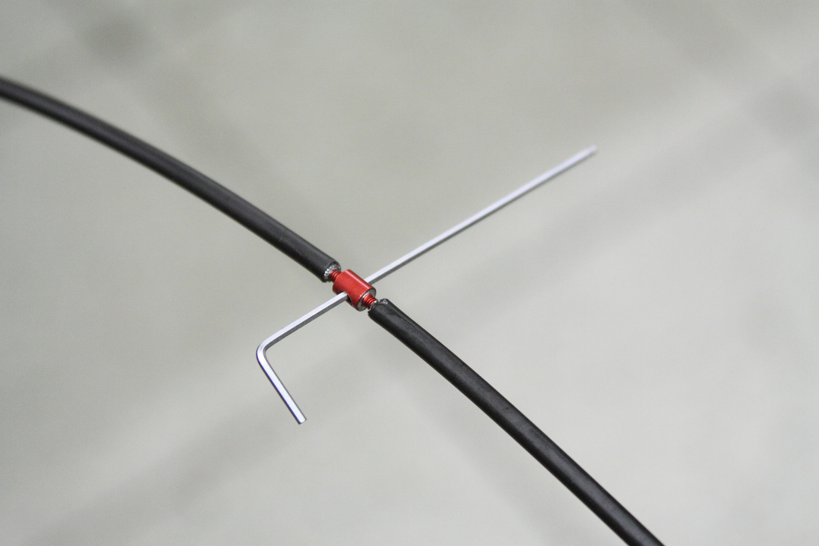 Wer seine Außenhüllen durch den Rahmen ziehen muss, braucht ein kleines aber feines Teil: Der RockShox Barb Connector verbindet die alte Außenhülle mit der neuen, so dass man den Strang mühelos durchs Rahmenrohr schieben/ziehen kann.