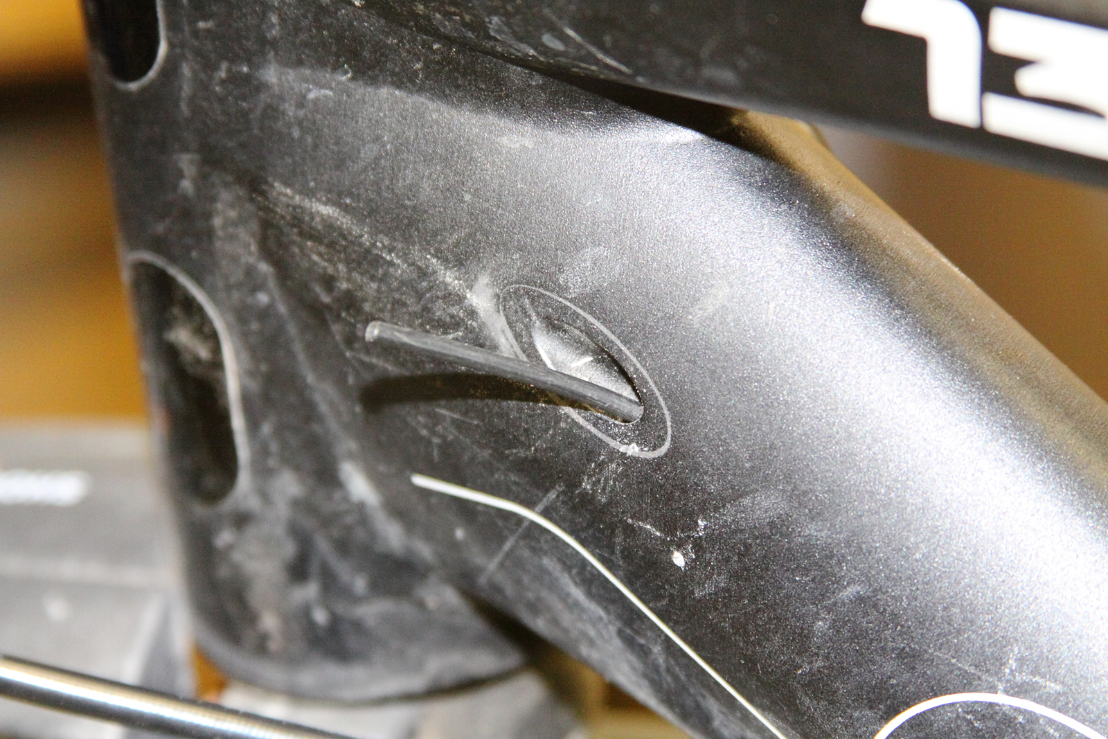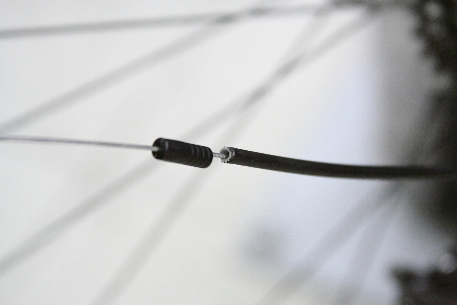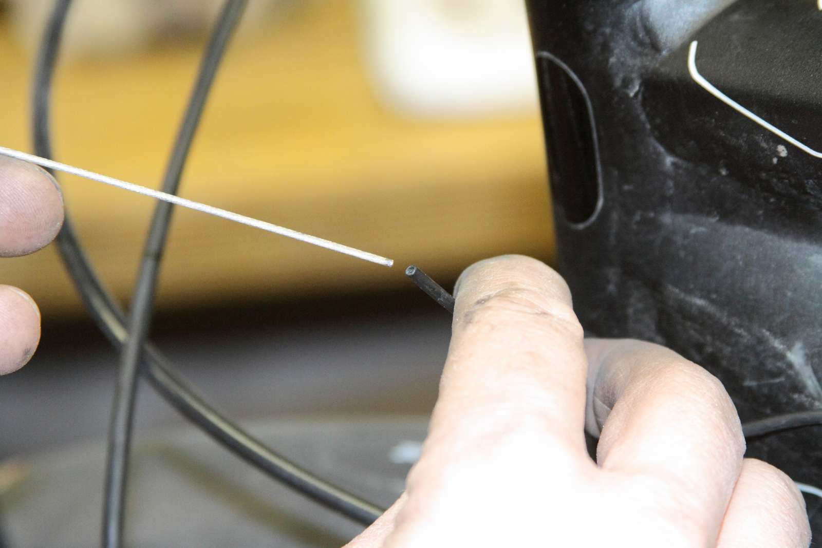 Wenn an deinem Rahmen lediglich das Stahlseil im Rohr verläuft (Außenhüllen enden am Einlass), dann benötigst du zum Durchfädeln des neuen Seils ein Stück Liner. Das Kunststoffröhrchen muss so lang sein, dass es beidseitig über das Rahmenrohr hinaus ragt.